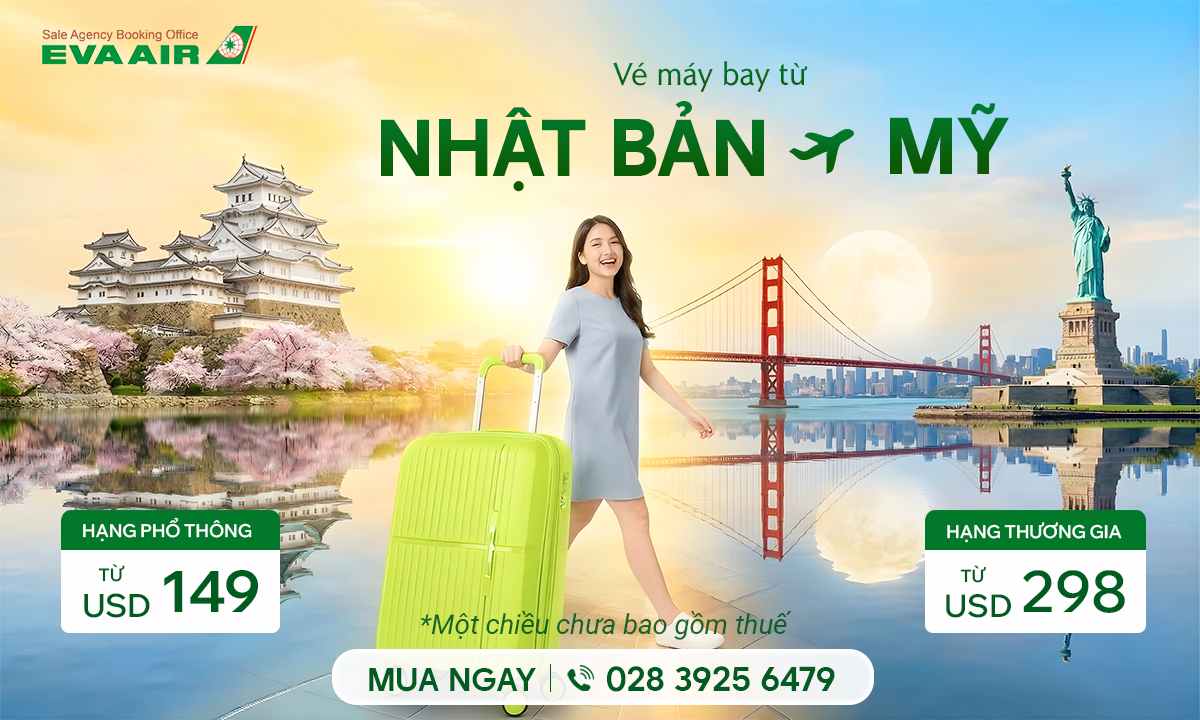 >>> Lưu ý:Tích lũy dặm bay nhanh chóng, không cần thủ tục rườm rà. Liên hệ 028 3925 6479 – Phòng vé EVA Air Việt Namđể được hỗ trợ miễn phí!